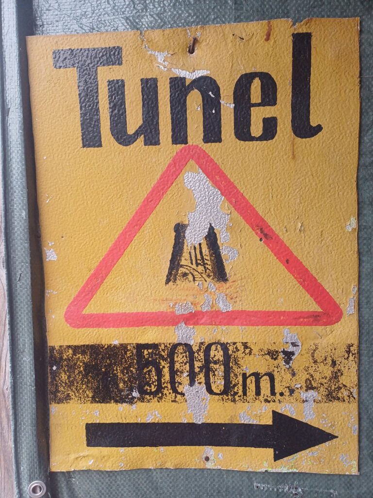 Međutim, manje od godinu dana nakon izgradnje postavljena je uska železnička pruga, a uvedena su i mala kolica za transport robe kroz tunel.