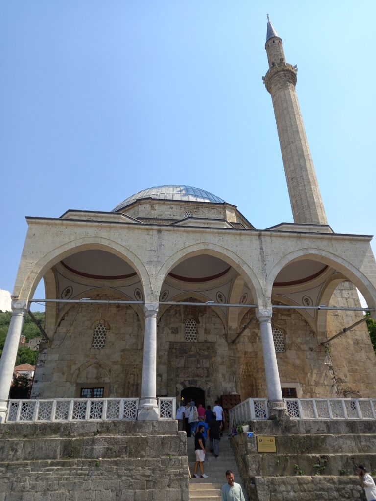 Odmah nakon prelaska preko Bistrice dolazimo do najveće džamije u gradu – Sinan pašina džamija, izgrađene u 17. veku. Džamija je jedno od najvažnijih islamskih verskih i arhitektonskih obeležja grada – često se naziva i “draguljem” Prizrena.