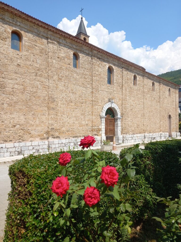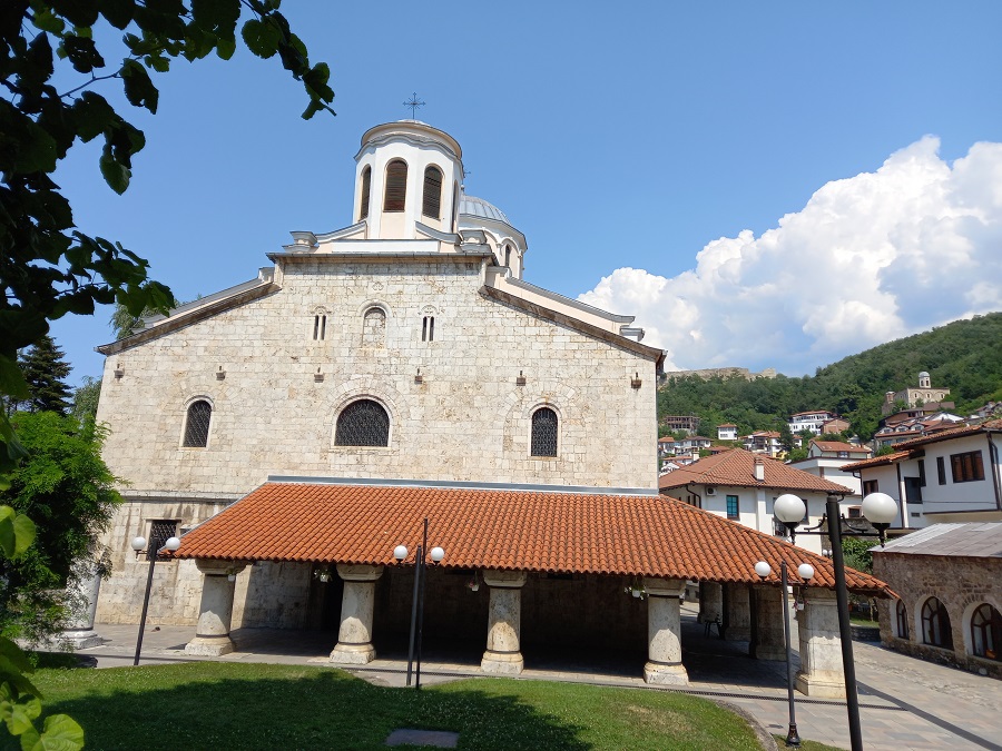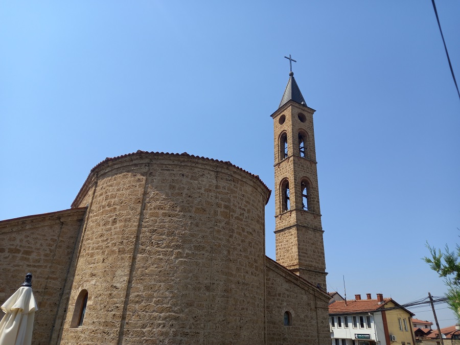 Na najudaljenijoj tački do koje smo stigli u odnosu na početak naše šetnje nalazi se Katedrala Gospe od Neprestane Pomoći – sedište Rimokatoličke biskupije Prizren–Priština. Izgrađena je 1870. godine po nalogu Daria Bucciarellija, nadbiskupa Skopja.
