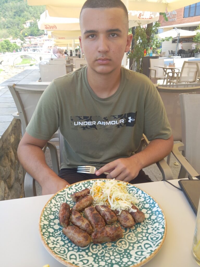 Dosta je bilo šetnje – vreme je za ručak! Na preporuku moje prijateljice Medise opredelili smo se za odličan roštilj u restoranu “Te Syla”, koji se nalazi u blizini Šadrvana uz samu obalu Bistrice.