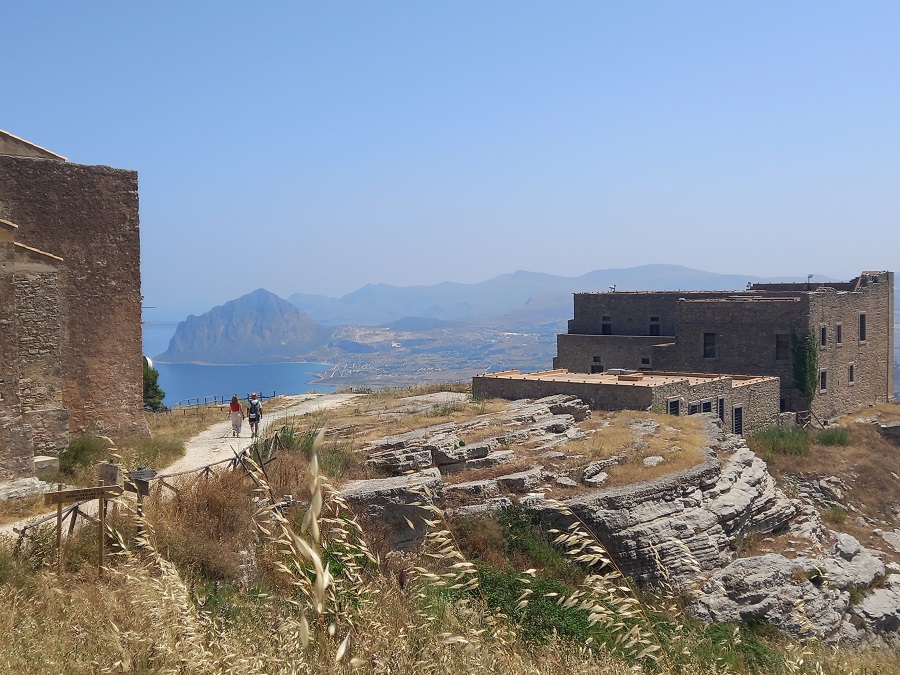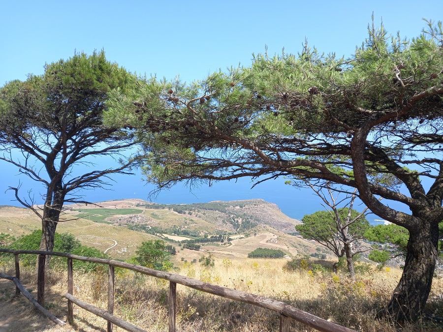 Kada je reč o vidikovcima, teško je nadmašiti prizor koji se pruža sa prostranog platoa ispred Španske četvrti. Odavde pogled doseže sve do impresivne stene Monte Cofano, o kojoj sam ranije govorio.