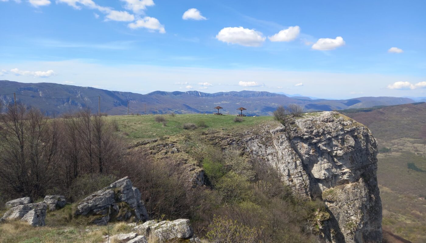 Pogled dalje doseže i do vrha Kom u Bugarskoj (2016m), Kaca kamen (1500m) i vrha Kopren(1963m).