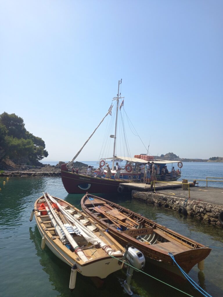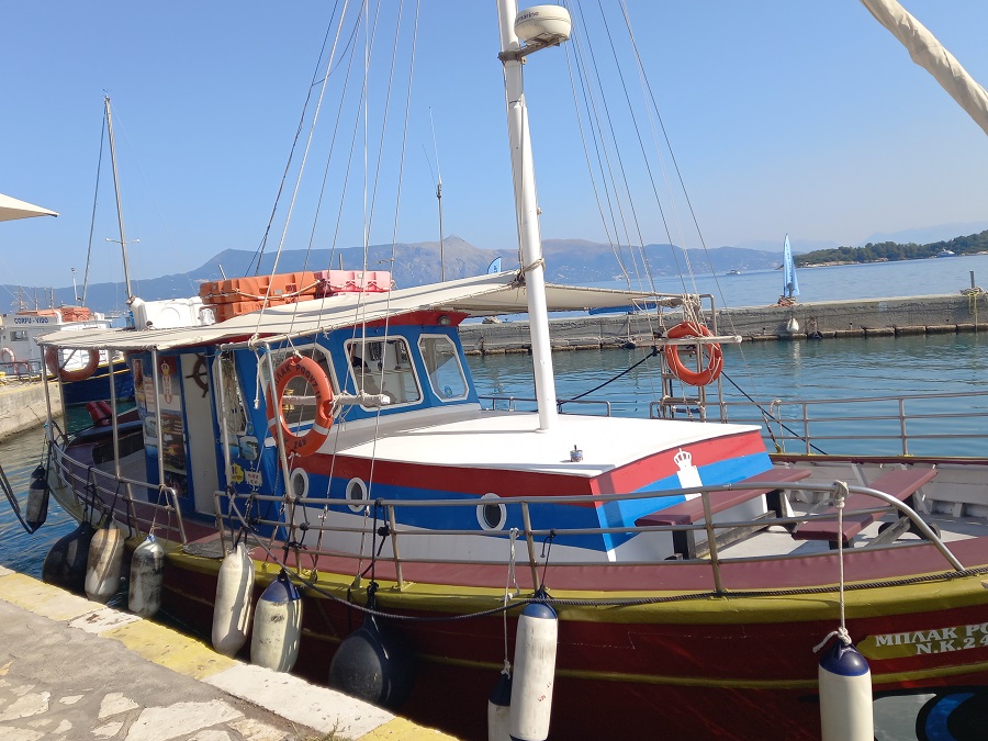 Brodić sa kojim smo prešli na Vido lako je prepoznatljiv, a karte po ceni od 5 eura za povratnu vožnju se obavezno kupuju na obali, u predstavništvu agencije tačno preko puta marine. Koristim izraz “marina”, a zapravo se radi o staroj luci grada Krfa.