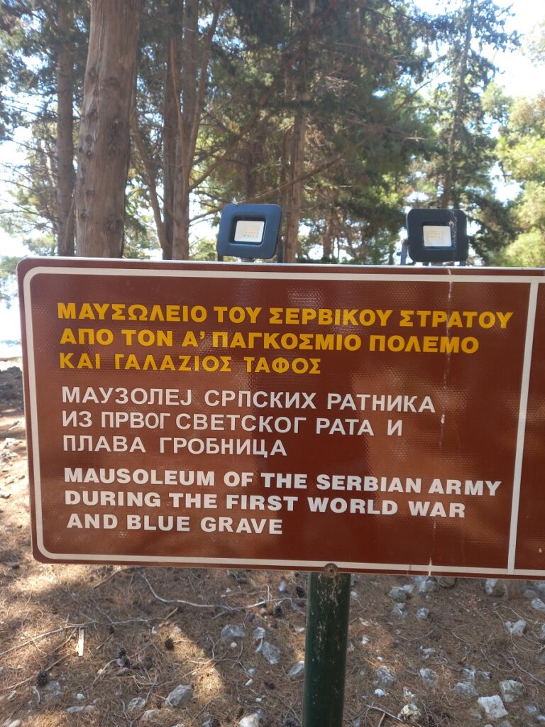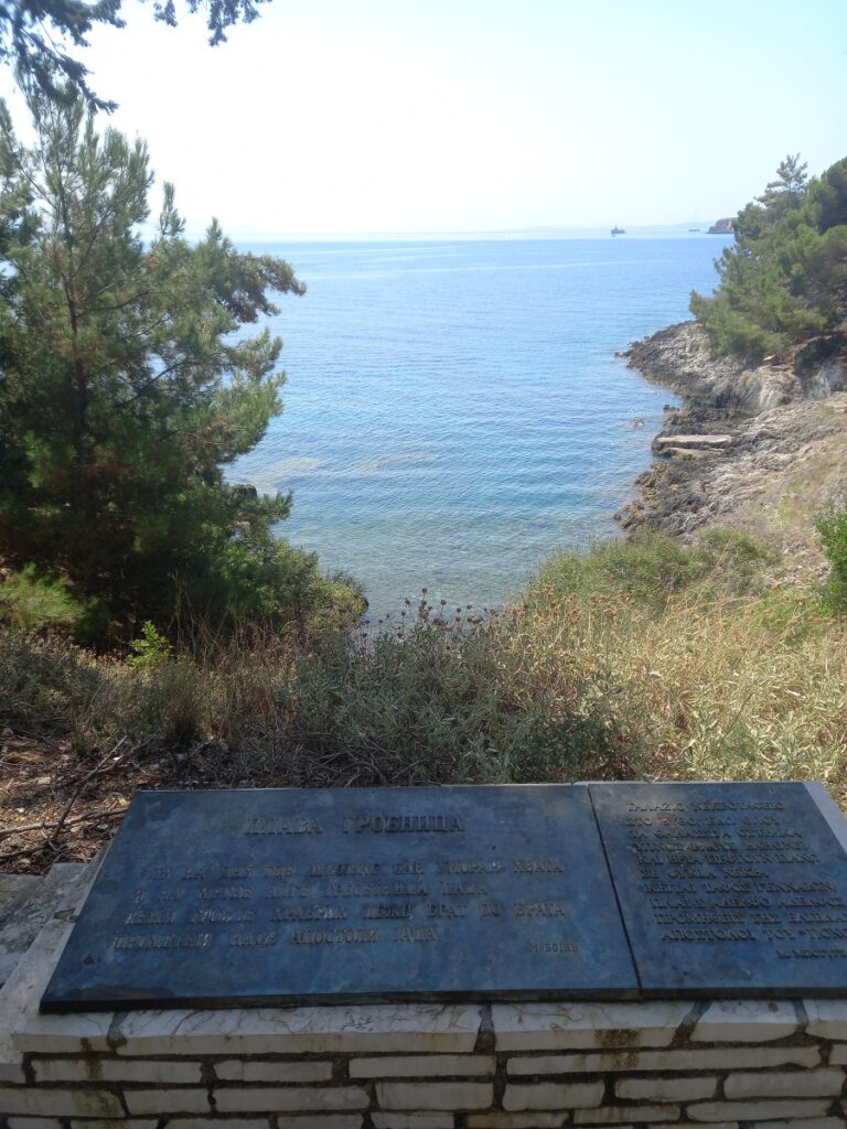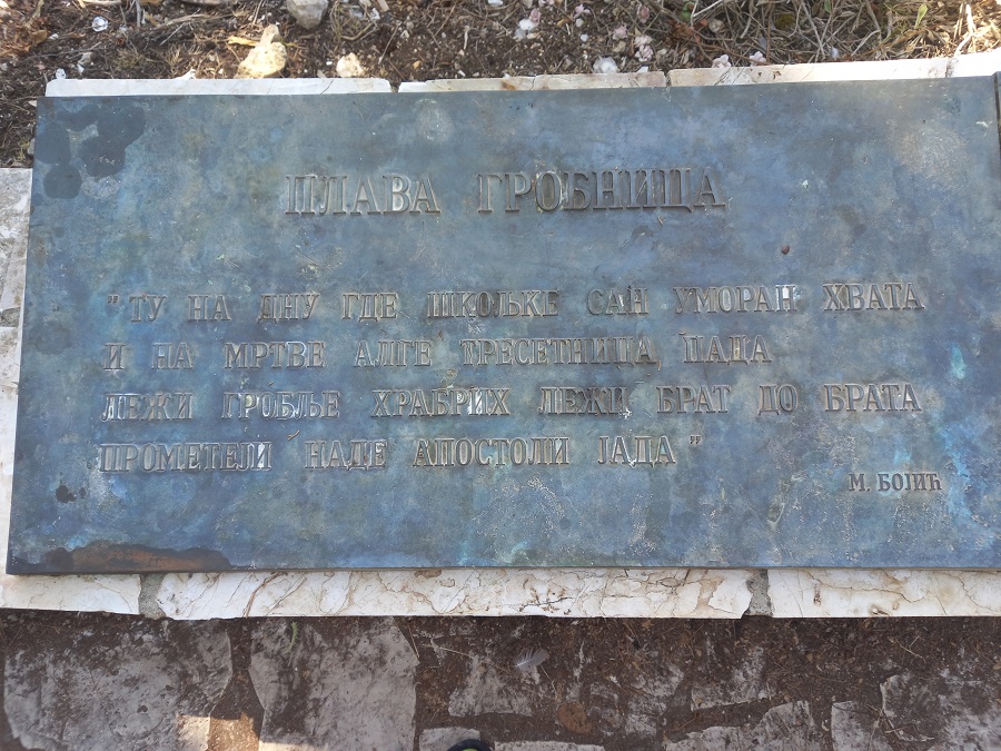 Tako je i nastao naziv “Plava grobnica”, što je ujedno i naslov potresne pesme koju je napisao Milutin Bojić, a čiji odlomak se nalazi na spomen-ploči iznad uvale u kojoj su polagana mrtva tela hrabrih ratnika u more: