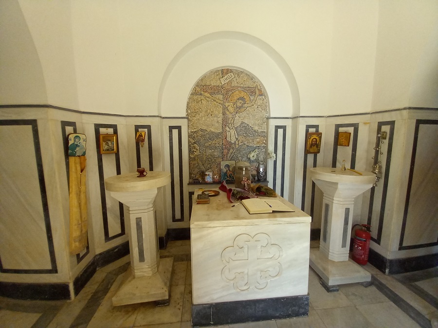 Uvala i spomen-kosturnica nalaze se na istočnoj strani ostrva, oko 500 metara od pristaništa. Ovaj deo ostrva odlikuje gusta šuma i bujna vegetacija, a grad Krf se odavde vidi “kao na dlanu”.