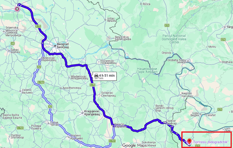 Na priloženim mapama vidi se tačna lokacija Belogradčika, no ne vidi se kvalitet puteva i detaljan geografski položaj koji značajno utiče na dužinu trajanja putovanja i samim tim na generalni plan i sadržaj cele avanture.